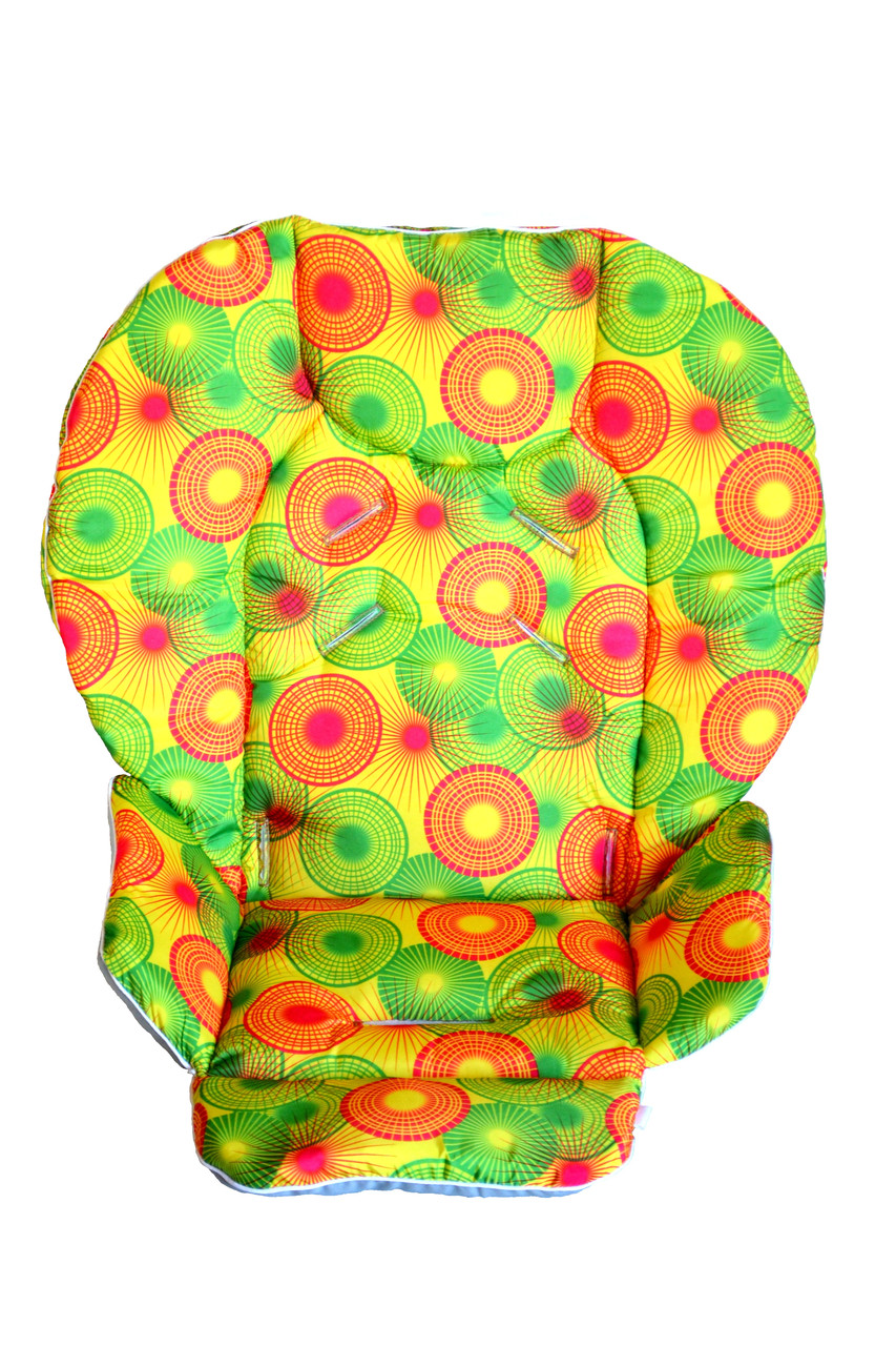 Чохол DavLu до стільчика для годування Chicco Polly 2 в 1 Різнобарвні круги на жовтому (Ch-006)