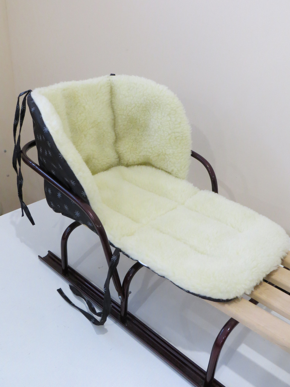 Кріпиться до санчат у чотирьох місцях, за допомогою зав'язок.